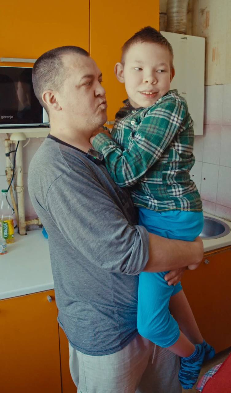 Ришат с сыном живут на пенсию 30 000 рублей. Часто им не хватает денег на простые, казалось бы, вещи. Иногда им дают в долг продукты на рынке, это спасает и помогает дожить до пенсии. Ришат иногда подрабатывает в Яндекс доставке: садится в старенький Шевроле, сажает сына в кресло и 3-4 часа они развозят заказы по городу. Потом возвращаются домой, так как нужно накормит Даню.