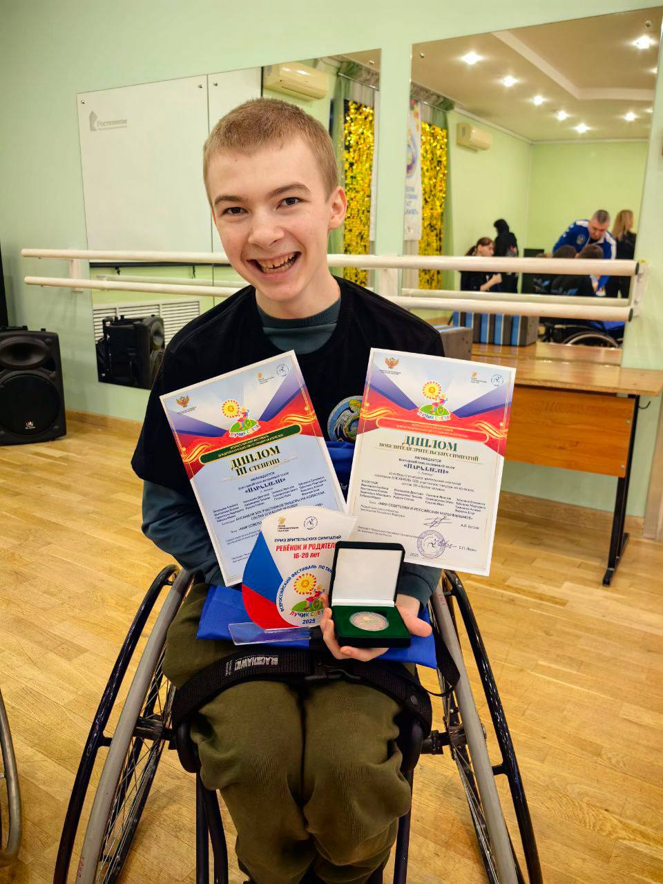 Дима – очень энергичный и амбициозный молодой человек. Для достижения успехов его диагноз не послужил препятствием. Дмитрий профессионально занимается танцами на колясках и имеет звание чемпиона России! А ещё обучается программированию, ежедневно тренируется дома и занимается специализированной верховой ездой.